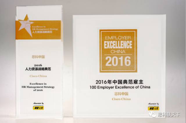 由前程无忧发起的 “中国典范雇主” 评选是目前国内最具权威的人力资源管理领域的评选之一。思科此次从参选的企业中脱颖而出,以卓有成效的人才吸引和保留计划、积极的员工发展和培养、前瞻的绩效和薪酬制度以及企业文化的积极举措,荣获 “2016 中国典范雇主” 百强企业与 “2016 人力资源战略典范” 两项大奖,体现了业界对思科人才发展理念及实践的高度认可。